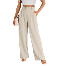 LILLUSORY Wide Leg Dress Work Pants Womens Palazzo Flowy 2025 Summer Spring High Waisted Professional Business Office Interview Outfits Bottom Wear Trousers Dressy Slacks Beige