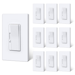 BESTTEN 10 Pack Super Slim Digital Dimmer Light Switch, Quiet Rocker, Max 300W LED, CFL, 600W Halogen, Single Pole or 3 Way Dimmable Switch, Screwless Wallplate Included, ETL Listed, White