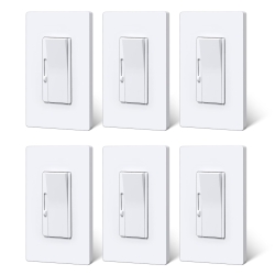 BESTTEN Super Slim Dimmer Light Switch, Quiet Rocker, Single Pole or 3 Way Dimmable Switch, Max 300W LED, CFL, 600W Incandescent, Screwless Wall Plate Included, ETL Listed, 6 Pack, White