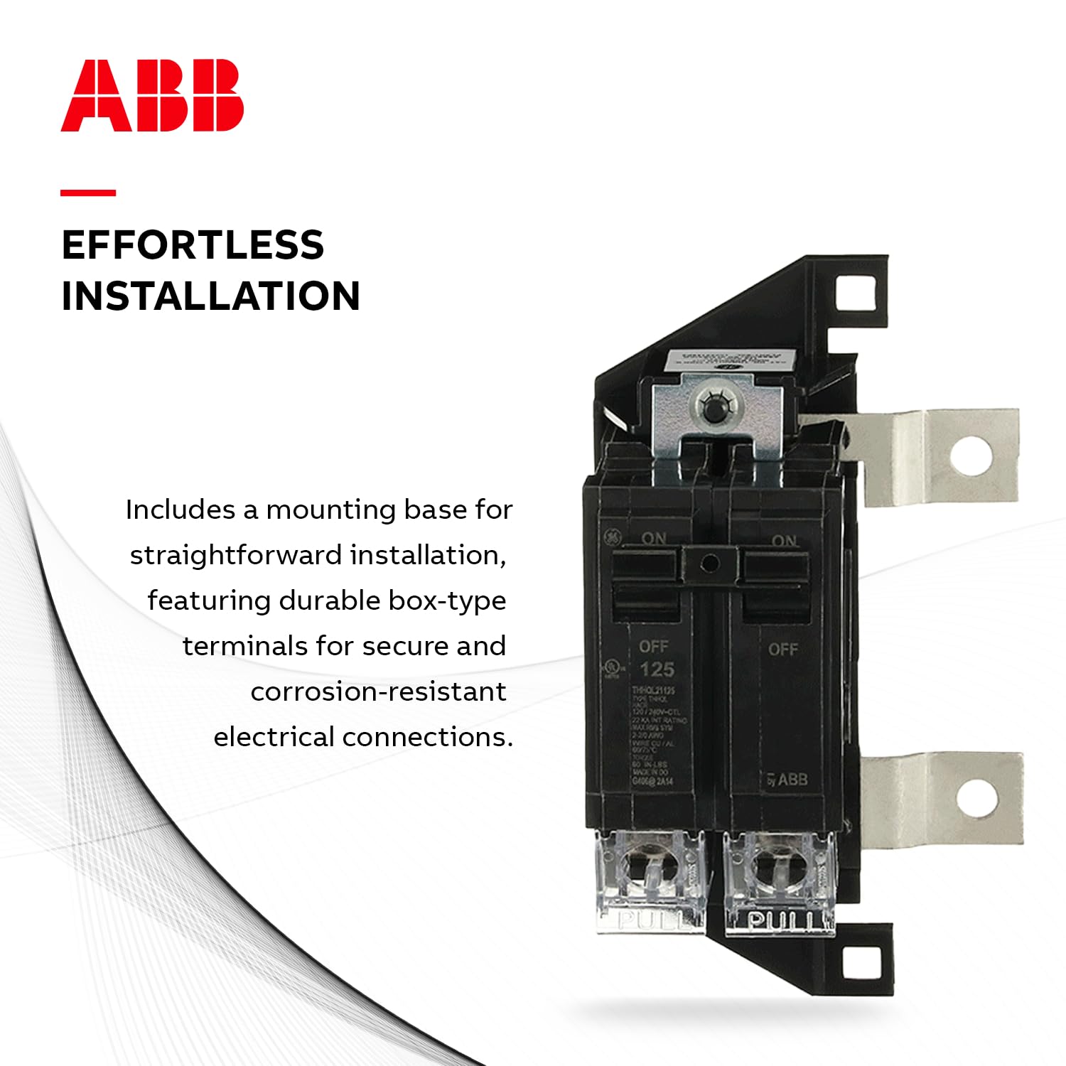 - EASY INSTALLATION WITH MOUNTING BASE INCLUDED – The ABB 2-Pole Main Circuit Breaker Conversion Kit comes with a mounting base, making installation into your load center straightforward, easy and efficient. Featuring durable box-type terminals, the ABB THQMH125CP ensures secure, stable and corrosion-resistant electrical connections.