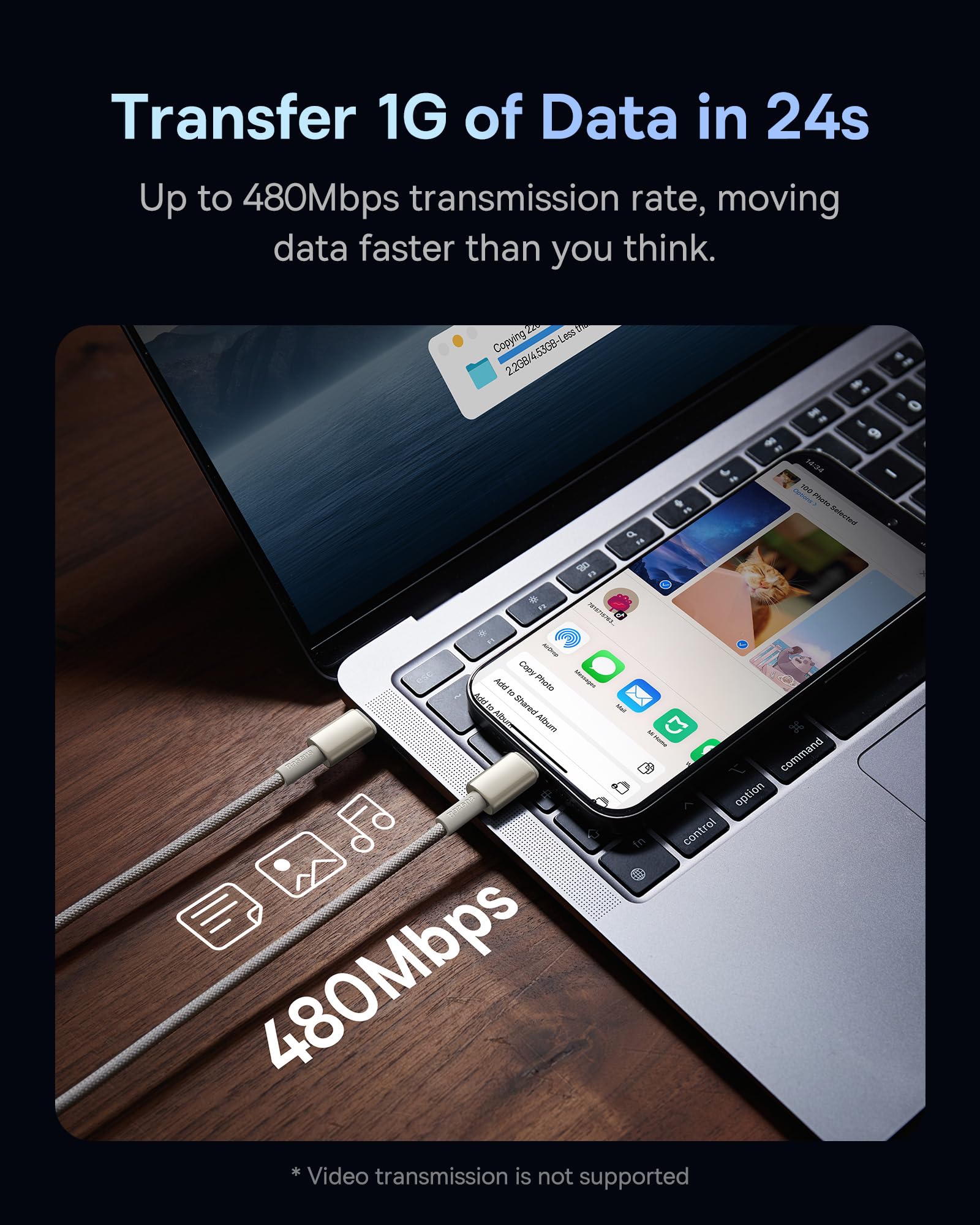 - ✔【Broad Compatibility】This cable supports most of the fast charging protocols on the market. It can charge all USB-C phones, tablets, laptops, even the latest MacBook Pro/Air, iPad Pro at maximum speed. ( Note:This usb c cable is for data transmission only and does not support video transmission )
