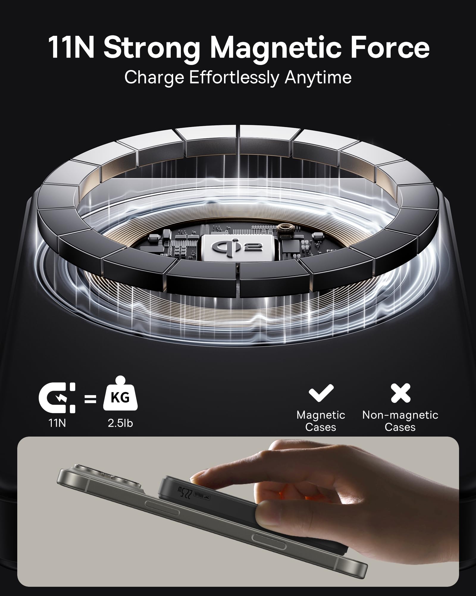 - ✅【𝐌𝐚𝐠𝐧𝐞𝐭𝐢𝐜 𝐒𝐧𝐚𝐩 & 𝐆𝐨】Unlocks the QI2 standard’s perfect Magnetic Power Profile, ensuring precise alignment with your iPhone 12 or later, it could prevent misalignment, leading to less produced heat, and can also be used to extend battery life. With 2.5lb strong magnets offer a firm attachment to iPhone and can easily fit into your pocket, making it your perfect charging companion on the go.