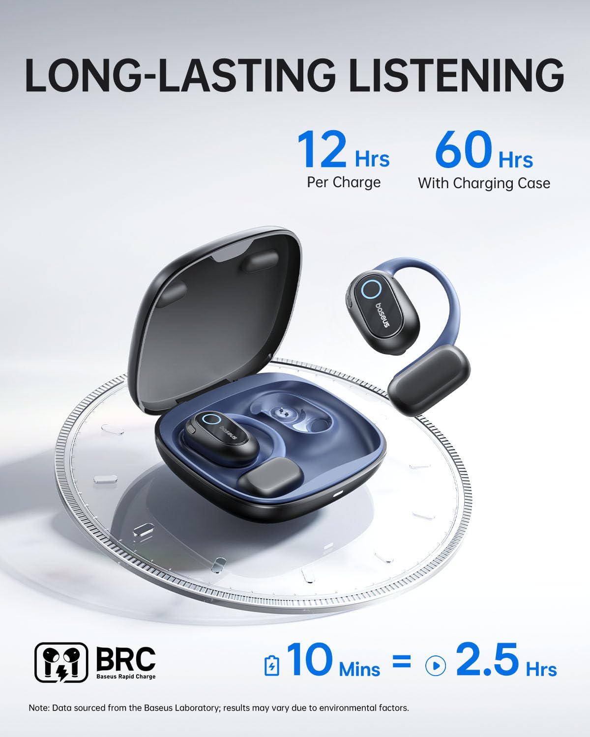 - SEAMLESS DUAL-DEVICE CONNECTIVITY: Featuring Bluetooth 5.4 and the Dual-Channel Low Latency (DCLL) tech, this open-ear headphones wireless Bluetooth ensures stable, lag-free connections. Switch effortlessly and seamlessly between two devices with the Baseus Smart-Connect (BSC) tech for ultimate convenience