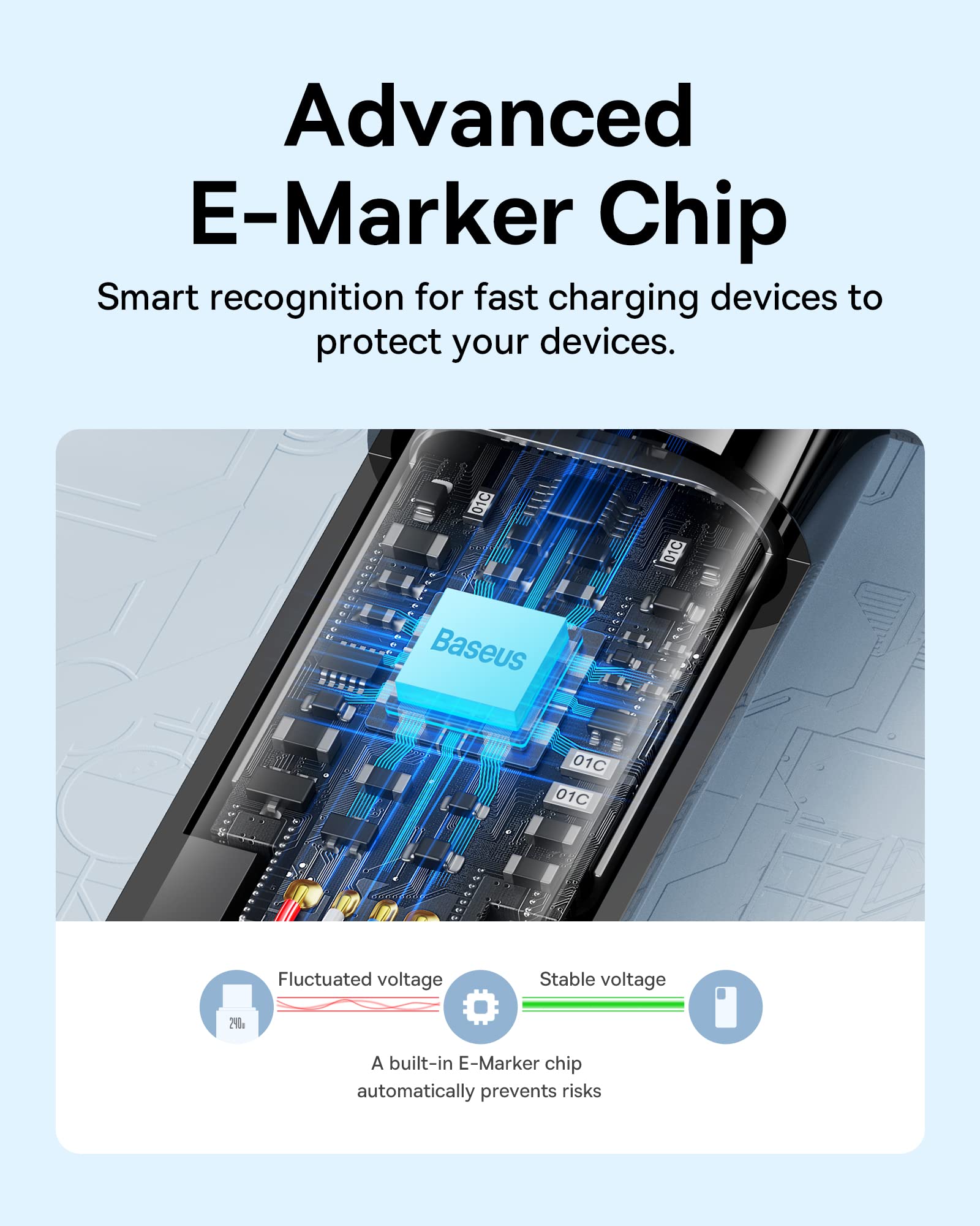 - Cutting-edge E-marker Technology: Our usb c cable features the latest E-marker technology, providing a much safer and efficient charging experience. It also enables accurate management of current and voltage, preventing any harm to your devices when charging, wiping away your concerns