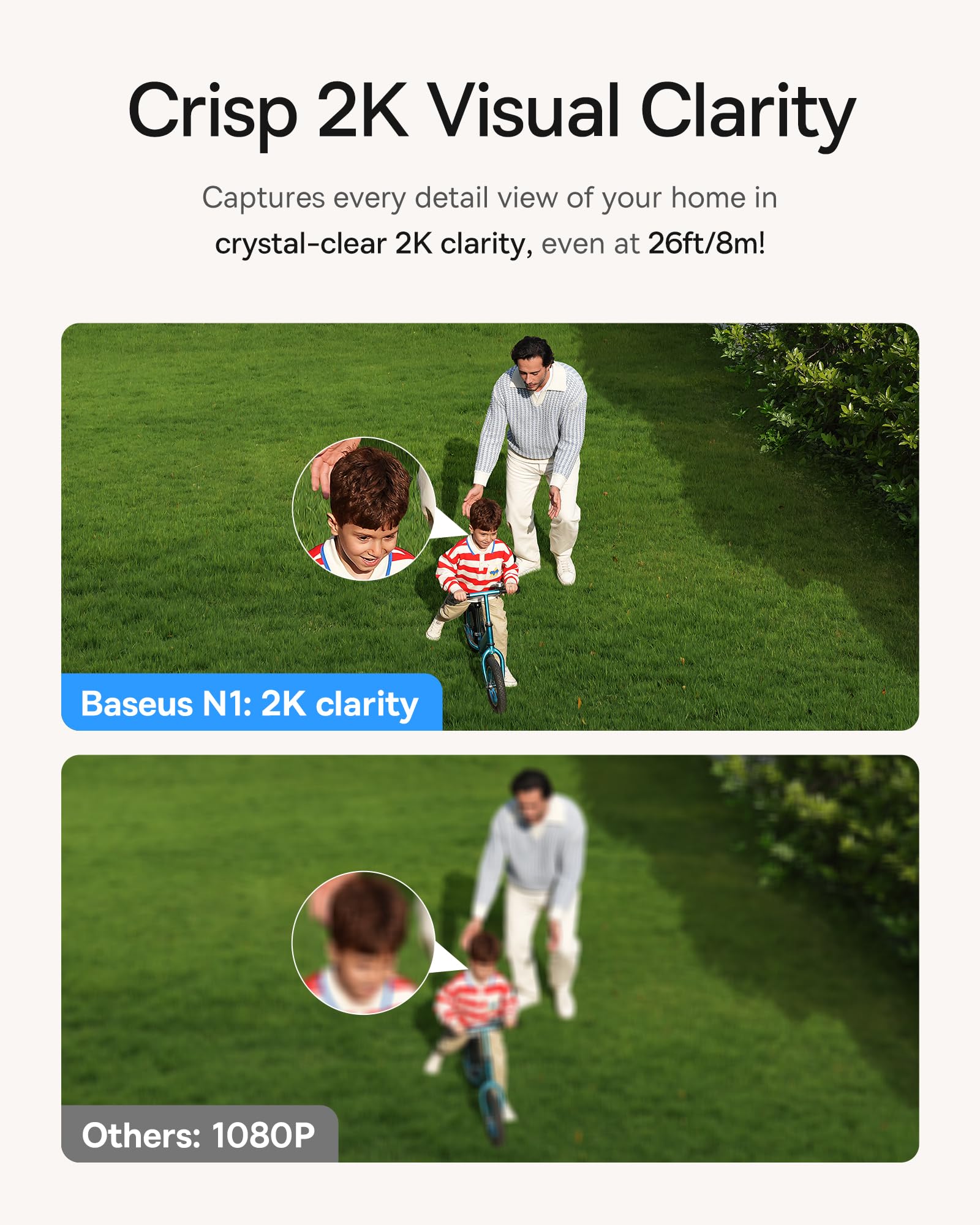 Baseus Wireless Outdoor N1 Add on Security Camera, Requires H1 HomeStation, 2K HD Clarity, 210-Day Battery Life, No Monthly Fee, 145° FOV, Color Night Vision and IP67