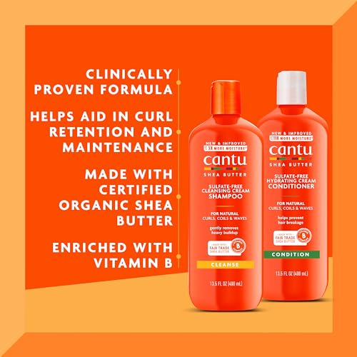 Details: Do wash day the right way with Cantu Shea Butter for Natural Hair Sulfate-Free Cleansing Cream Shampoo and Cantu Shea Butter for Natural Hair Sulfate-Free Hydrating Cream Conditioner! Crafted with an award-winning blend of pure shea butter and essential oils, the Cleansing Cream Shampoo produces a rich lather that conditions as it cleanses, gently removing product buildup without drying out hair. For best results, apply a quarter-sized amount to wet hair and work into a lather. Massage into the scalp, and rinse. Repeat as needed. For best results, follow up with the Hydrating Cream Conditioner to help protect curls against breakage and split ends for stronger, healthier hair for best results and enjoy ultimate hydration and complete conditioning that delivers an added layer of moisture after shampooing. Enjoy ultimate cleansing, hydration and complete conditioning, formulated without the use of harsh ingredients like mineral oil, drying alcohol, sulfates, parabens, silicones, phthalates, paraffin, or propylene. Since the beginning, you’ve pushed us to advance skin and hair science to honor your locs, your curls, your waves, your braids, your natural. At Cantu, we support your journey with care and we celebrate all the styles you rock!