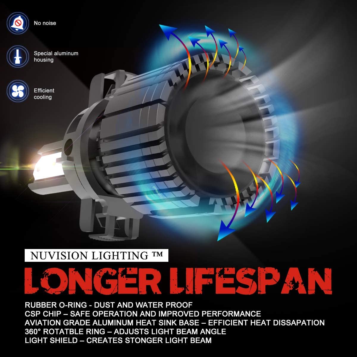 - 【 High-Performance mute design with Adjustable Concentration and Brightness】8000 revolutions per minute. High-speed but stay quiet brings truly effective heat dissipation. The long-range design brings you a safe driving experience. LED replacement bulbs improve nighttime visibility by providing a clearer beam of light, with a 50% more wider field of vision that will help you reduce the sudden traffic accidents in the darker and without street lights.