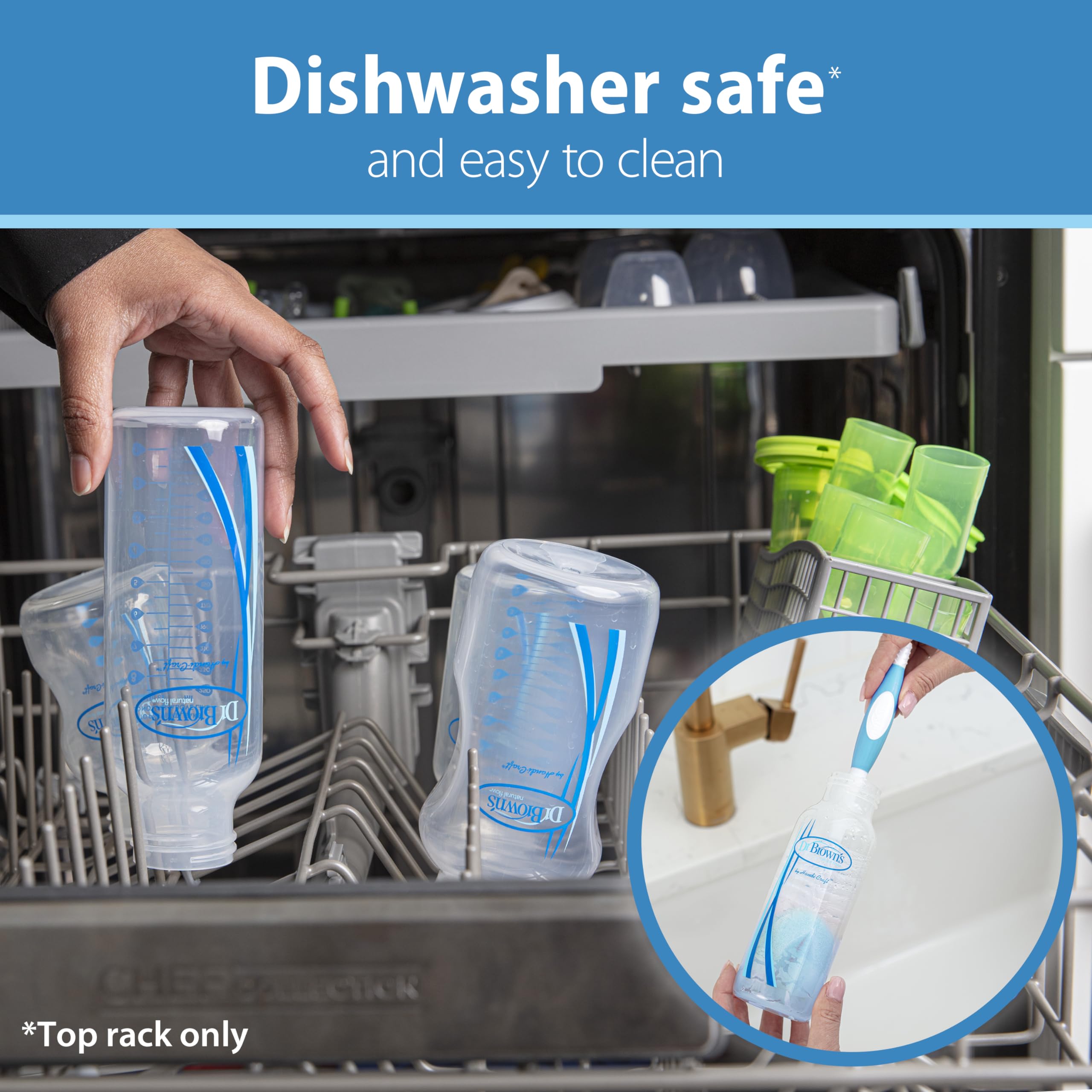 • DISHWASHER SAFE. Safe for use in dishwasher (top rack only), electric and microwave sterilizers or boiling water. BPA Free.