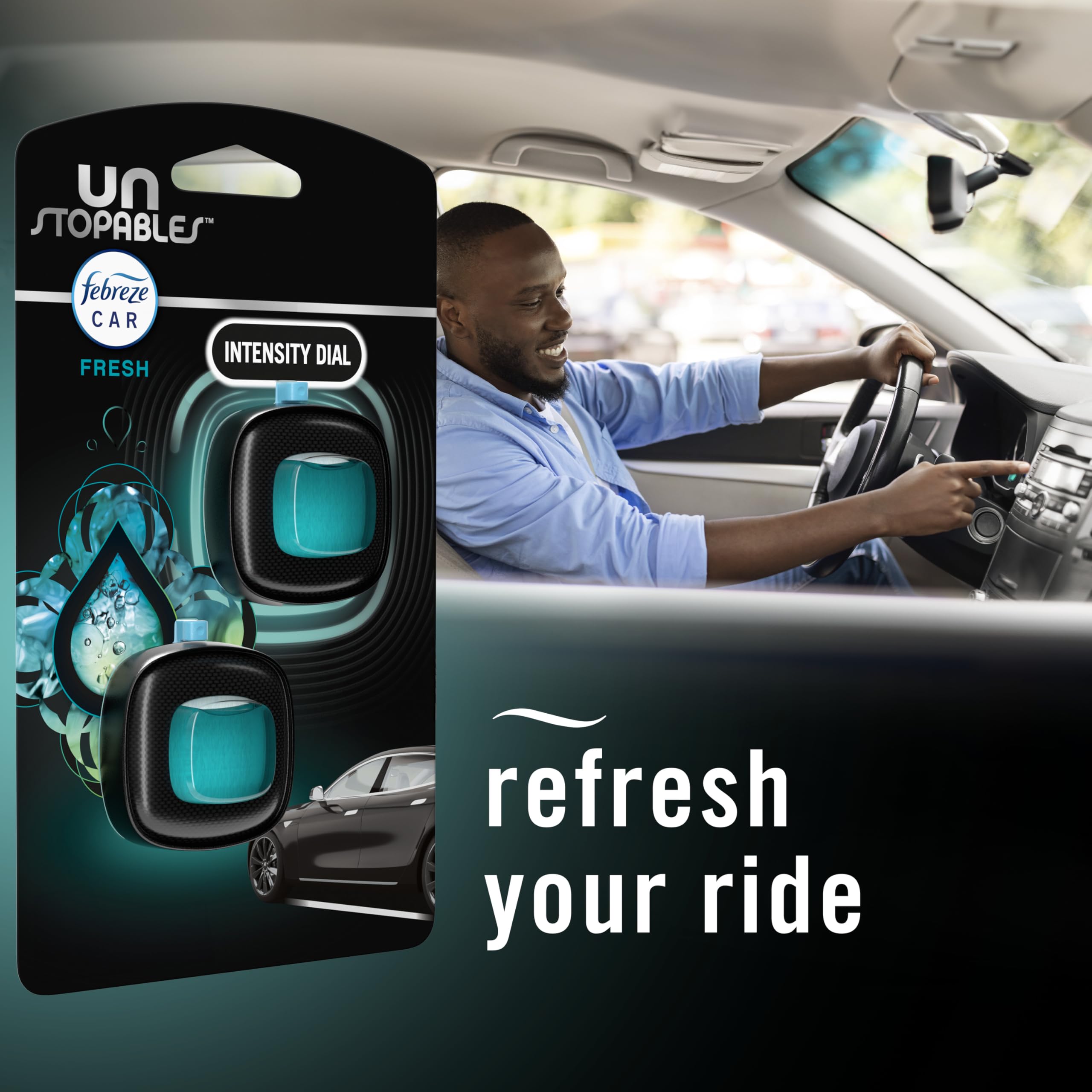 Details: From soccer cleats to French fries, everyday odors get trapped in your car and follow you around town. Kick ’em to the curb and enhance your drive with some bold freshness. Febreze Unstopables CAR Vent Clips fight odors trapped in your car, minivan, or ice cream truck with an irresistible scent. These powerful but tiny car vent air fresheners have incredible odor blockers and odor fighters that fight all those stinks and smells built up from your longest, commute-iest days. Simply push the vent clip firmly until you hear it click to activate fragrance, then clip onto your car vent and drive stink-free for up to a whole 40 days. With the airy, just-washed scent of Fresh, you’ll want this crave-worthy scent within reach. So, freshen up your ride and breathe happy. And if you’re looking for an explosion of scent at home, try Febreze Unstopables Touch Fabric Spray and get a burst of freshness with every touch.