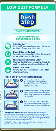 - 30% LIGHTER: This lightweight formula is 30% lighter compared to Fresh Step Simply Unscented Litter, giving you the same number of uses as a 22 lb box*