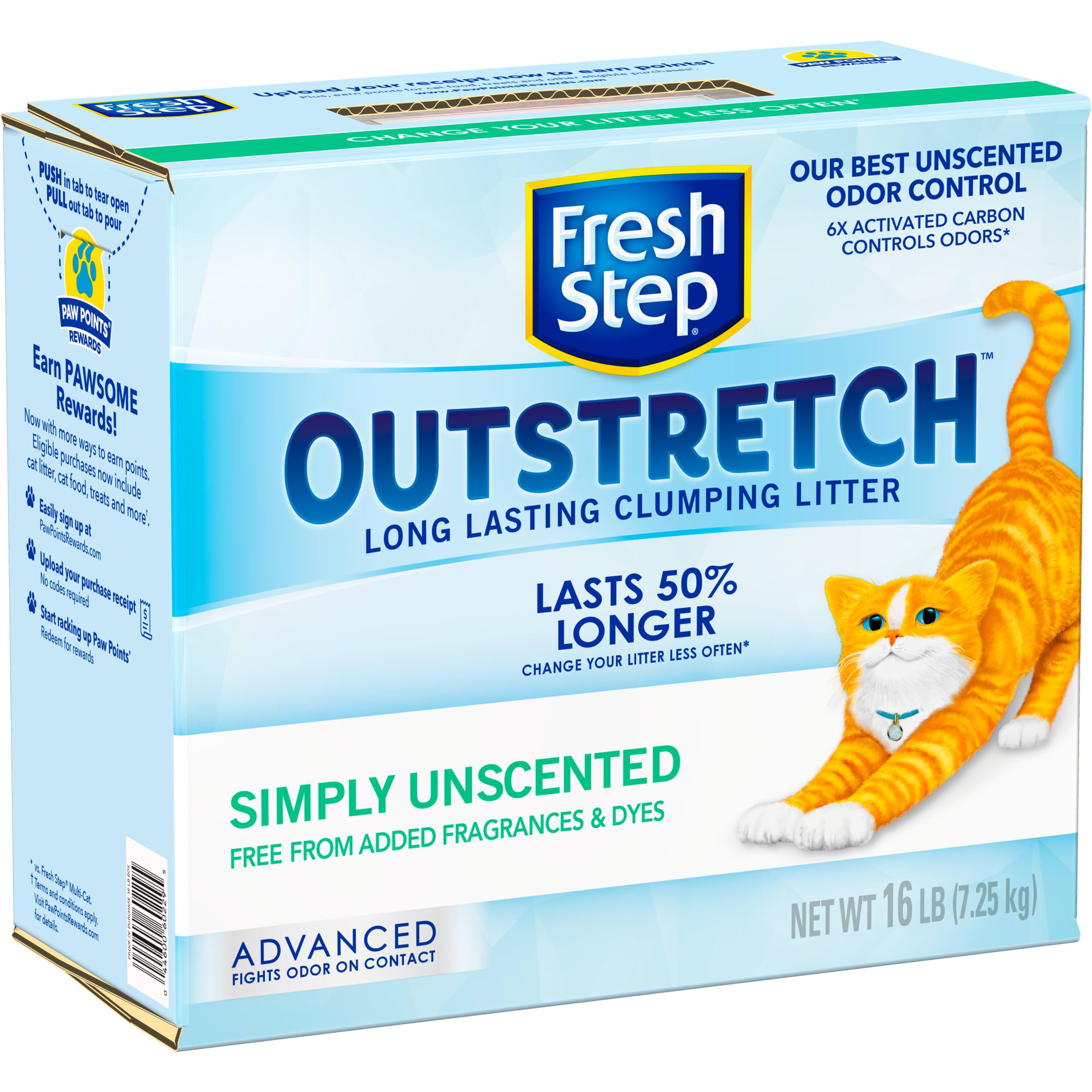 - KEEPS THE LITTER BOX CLEANER FOR YOU AND YOUR CAT: Fresh Step Outstretch Advanced Unscented Long Lasting Clumping Litter creates a cleaner more welcoming experience for your cat*