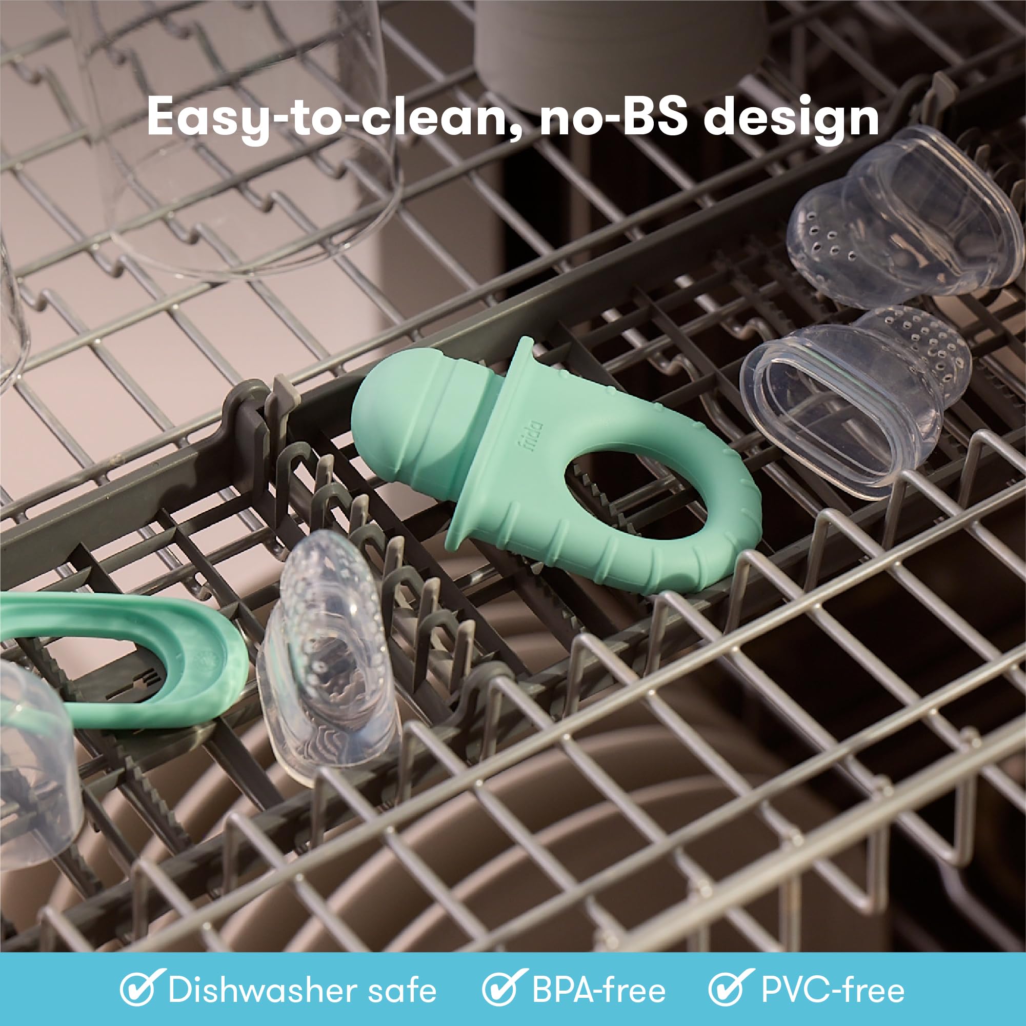 - FOOD INTRODUCTION: Fill the silicone feeder with fresh or frozen fruits, vegetables, yogurt, purees, breastmilk, or ice cubes. It’s the perfect fruit teether for babies.