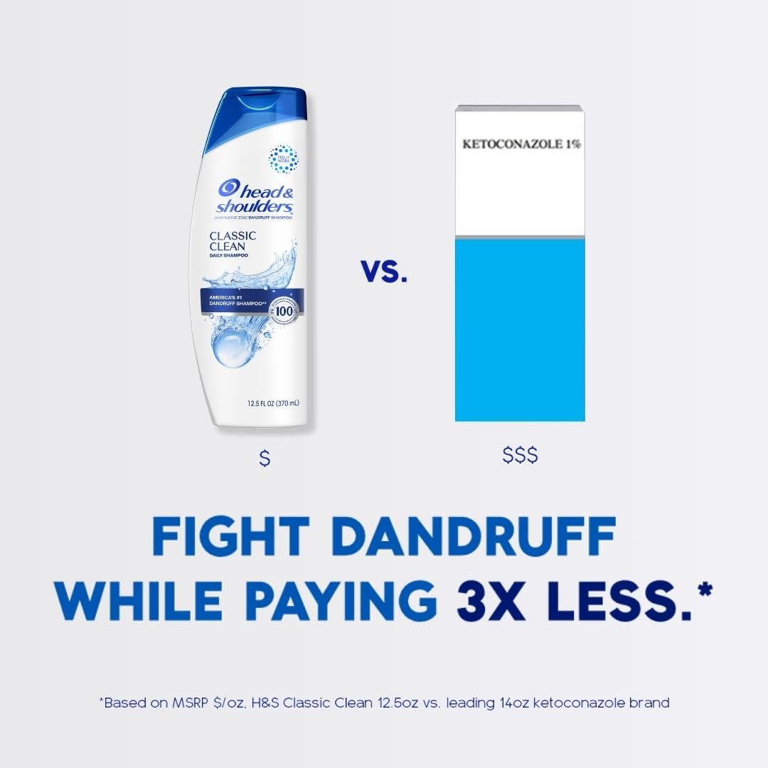 Details: Confidence looks good on you with Head & Shoulders Classic Clean Anti-Dandruff Shampoo. The rich-lathering formula delivers proven protection from flakes, itch, oil and dryness* and is brought to you by America’s #1 dandruff shampoo brand.† This formula is gentle enough on hair for daily use—even for color-treated hair—and is the perfect first step in your daily haircare routine, so you can start every day with your head held high. *flakes and itch associated with dandruff †based on volume sales Regular use of Head & Shoulders anti dandruff products nourish your scalp three surface layers deep to prevent dryness, flakes and itch, associated with dandruff. The Head & Shoulders collection includes clarifying shampoos, volumizing conditioners, and 2 in 1 combos, so you can introduce dandruff treatment to every step of your hair care routine. With a pH-balanced formula brought to you by America’s #1 dermatologist recommended brand, you can count on Head & Shoulders to combat seborrheic dermatitis, and other irritable and itchy scalp conditions associated with dandruff. Head & Shoulders products come in a variety of scents and formulas, and include ingredients like almond oil, tea tree oil, lemon extract, and peppermint. The shampoo & conditioner system are safe to use on color treated, curly or textured hair types, compared to a non-conditioning shampoo.