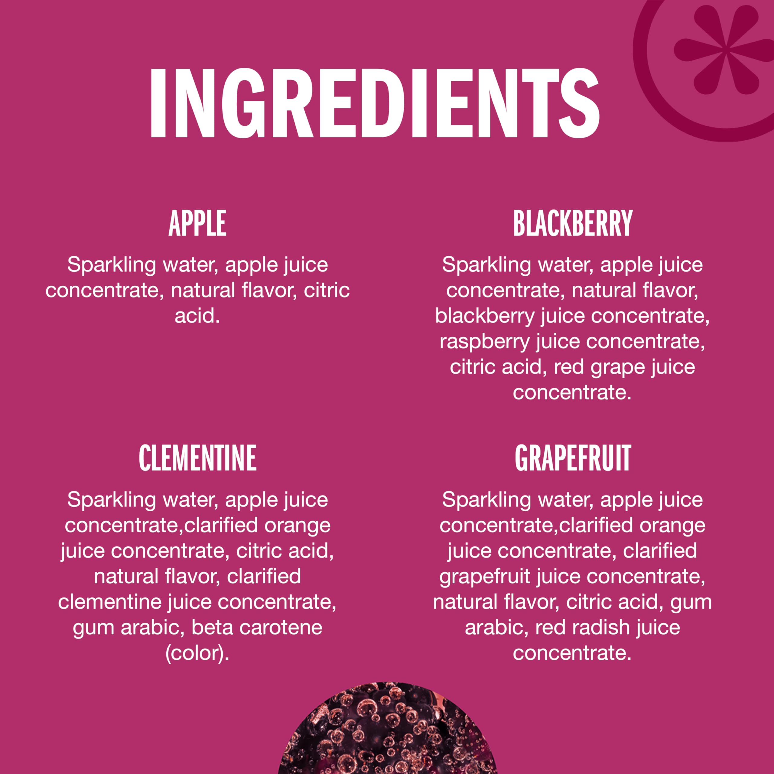 • Savor the IZZE flavor with this 24-pack Variety Pack that includes tangy Blackberry, sunny Clementine, crisp Apple and refreshing Grapefruit – you get six 8.4 FL OZ cans of each flavor, all fizzed to perfection