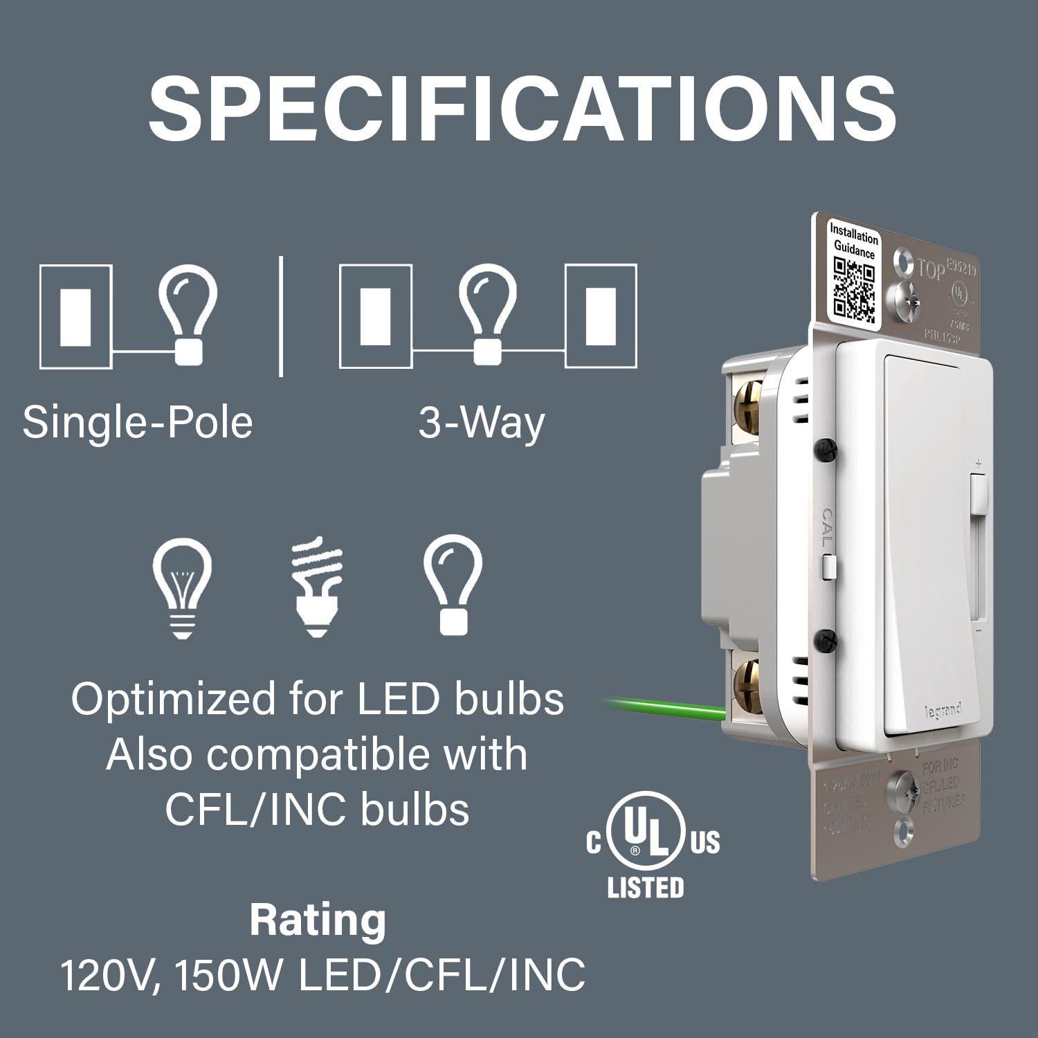 - Advanced dimming technology maximizes LED compatibility to provide a full range of control while helping to eliminate most common LED dimming issues