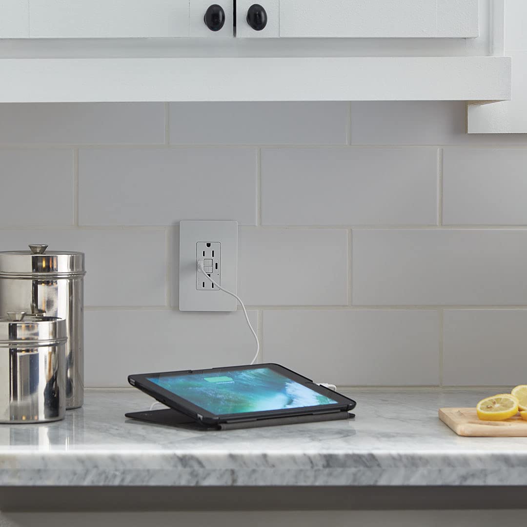 - Use – Charge without bulky AC adapters using this gfci usb outlet with two 5-volt DC USB ports that work with USB 2.0 and 3.0 compatible devices and 3.1A total USB charging capability shared between both ports