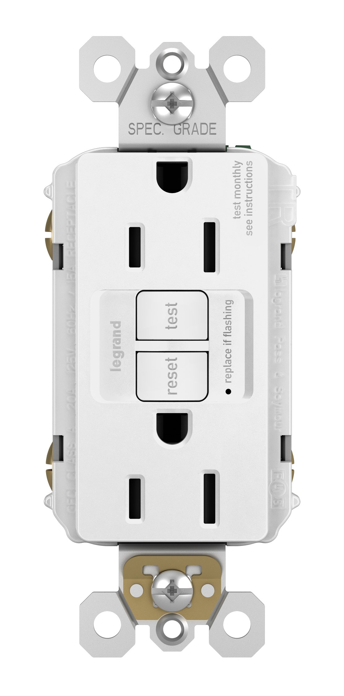 - Included – 1 Legrand – Pass & Seymour white GFCI electrical outlet with GFCI outlet 15 amp and self-test GFCI outlet
