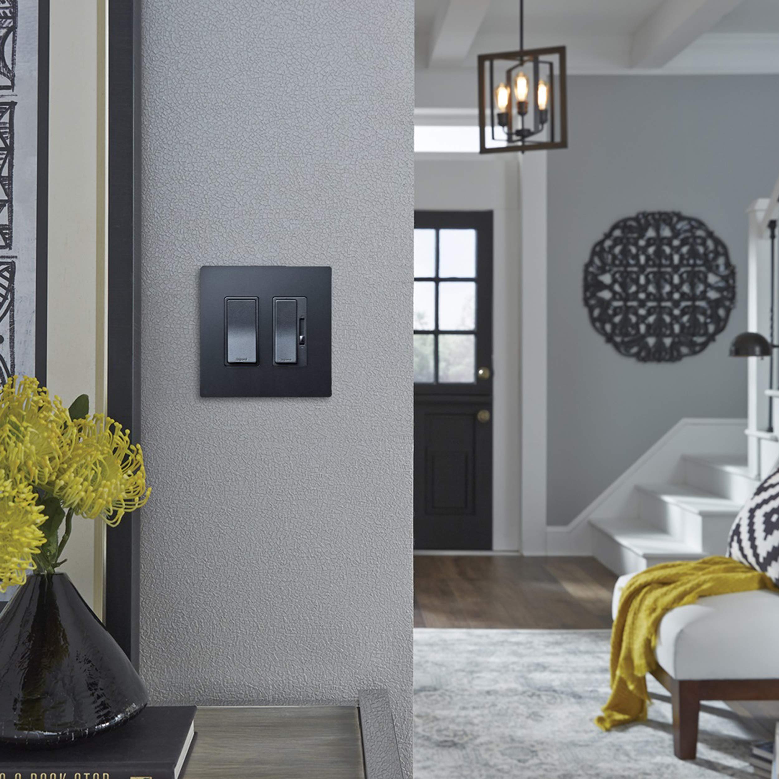 - Included – 1 Legrand – Pass & Seymour Radiant graphite rocker light switch, 15 amps, 3 way light switch