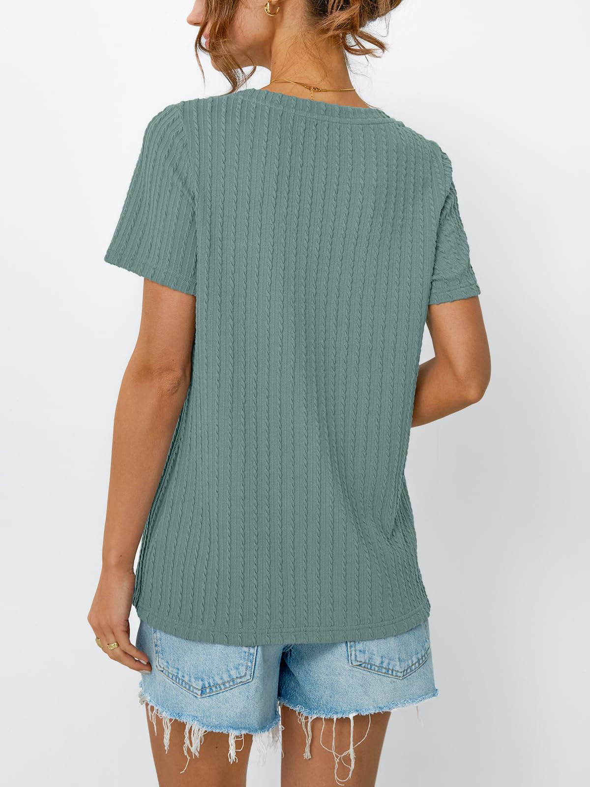 LILLUSORY Womens Short Sleeve Tops Work Summer Spring T-Shirts Vacation Trendy Business Casual Blouses Textured Clothes 2025 Green M