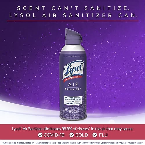 - HELP PROTECT FROM AIRBORNE PATHOGENS: Add Lysol Air Sanitizer Spray to your cleaning routine to eliminate 99.9% of viruses and bacteria* in the air and help protect your family. (*Use as directed).