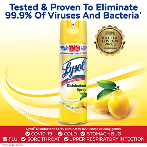 Lysol Disinfectant Spray, Sanitizing and Antibacterial Spray, For Disinfecting and Deodorizing, Lemon Breeze, 19 Fl Oz (Pack of 2), Packaging May Vary