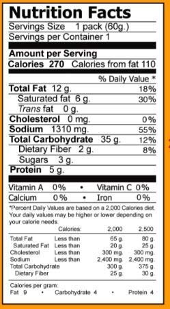 - SPECIFICATIONS OF MAMA INSTANT NOODLES: 60g per bag; 30 bags in a pack, Pork flavor