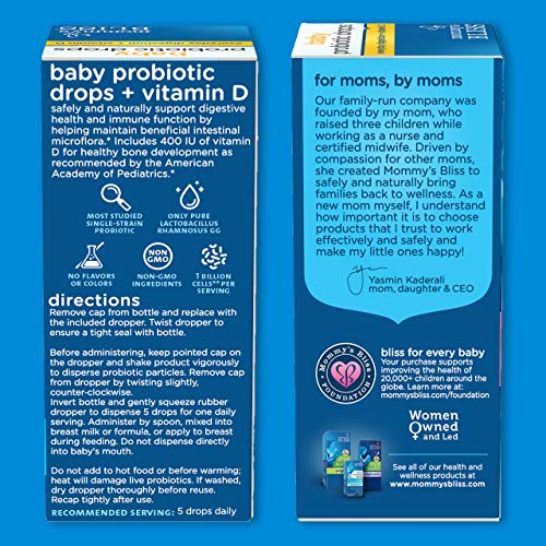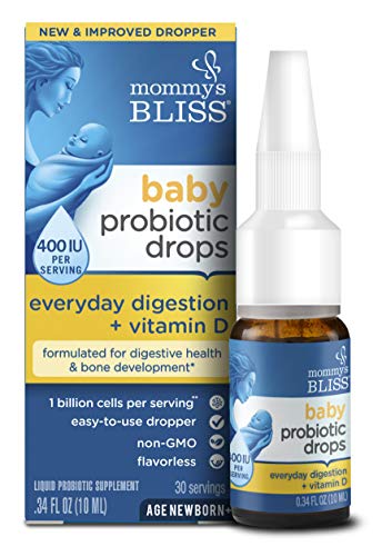 Mommy’s Bliss Baby Probiotic Drops + Vitamin D, Supports Digestive Health and Immunity, 400IU Vitamin D for Healthy Bone Development, Newborns +, Flavorless, 0.34 Fl Oz (30 Servings)