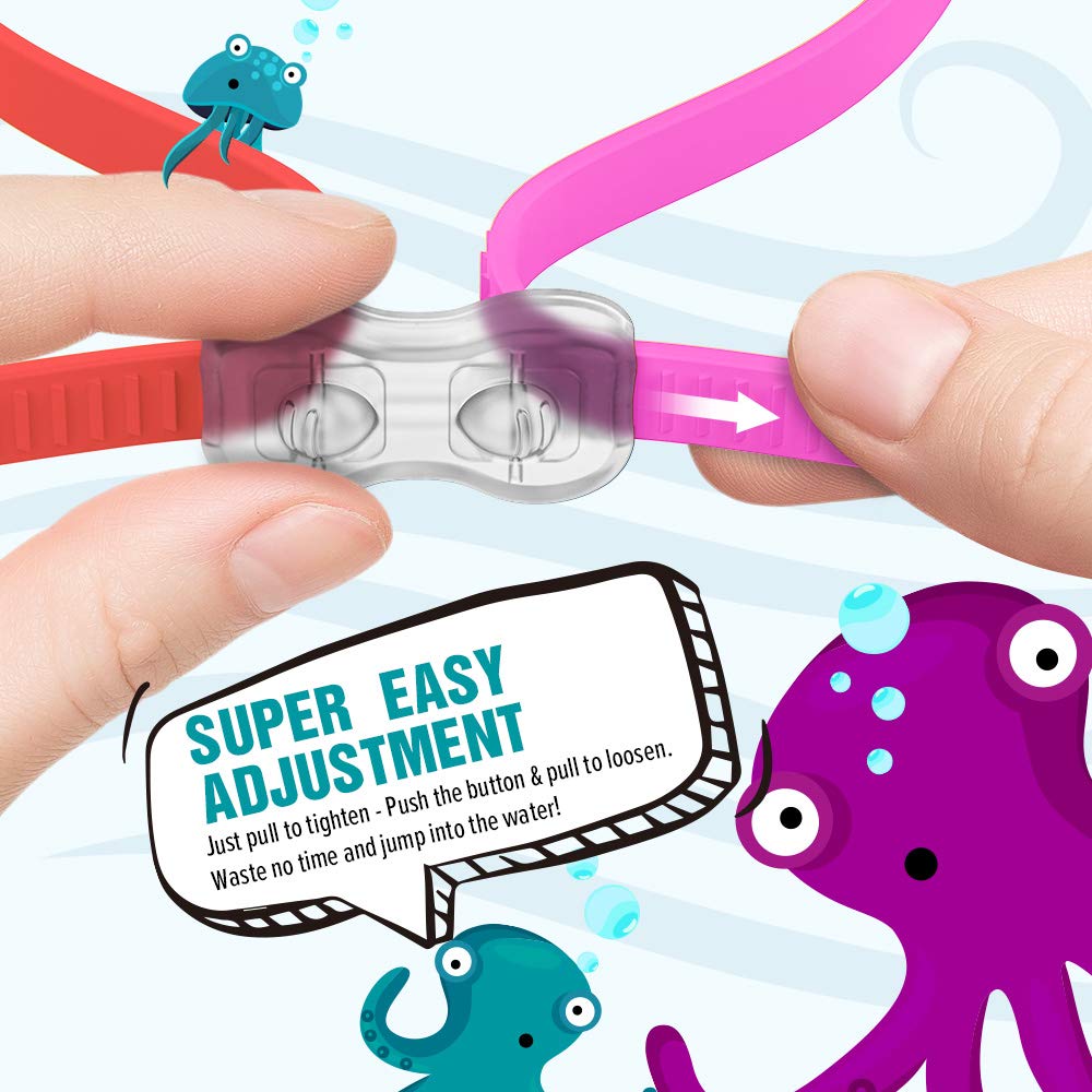 OutdoorMaster Kids Swim Goggles 2 Pack – Quick Adjustable Strap Swimming Goggles for Kids – E