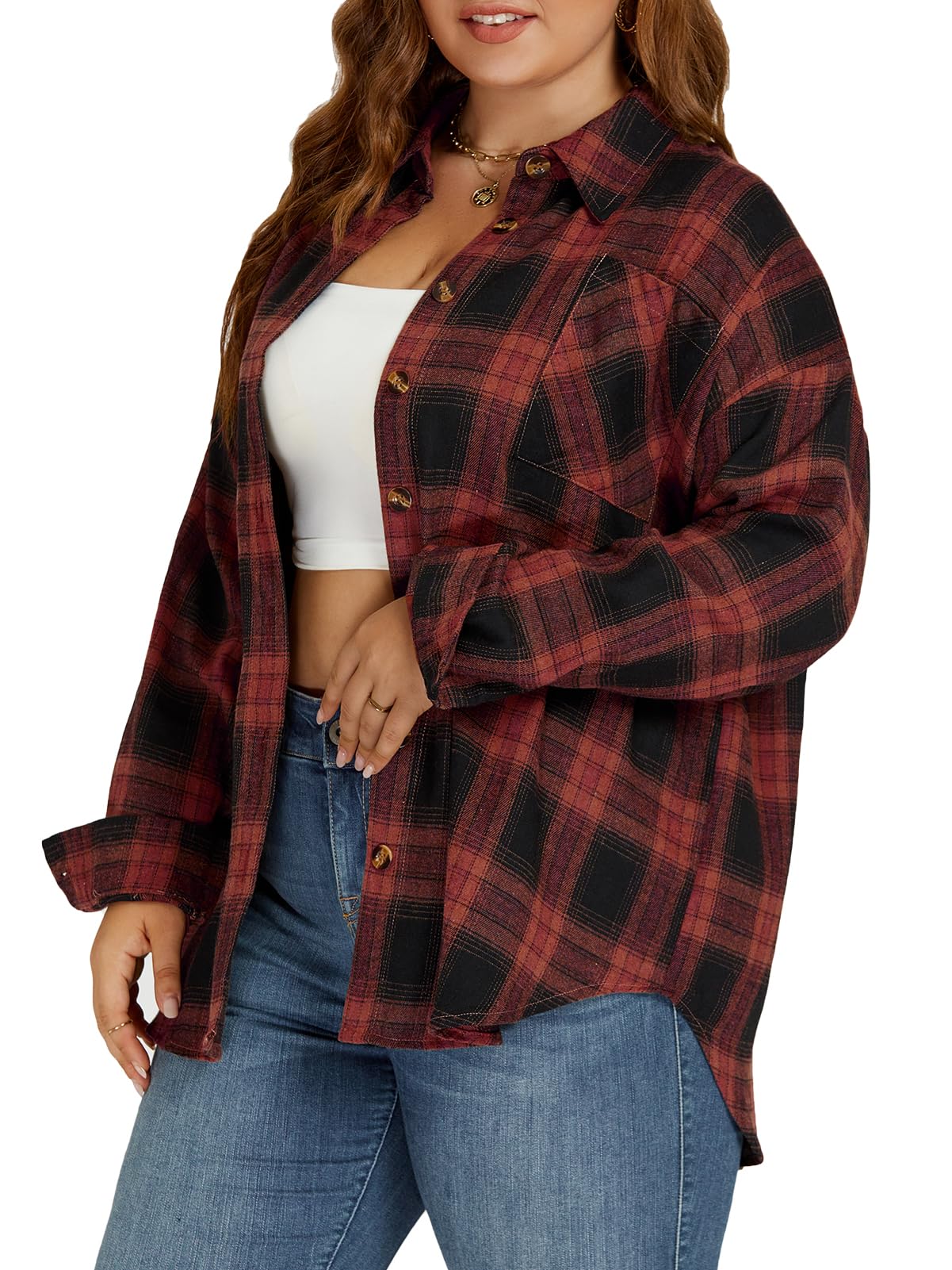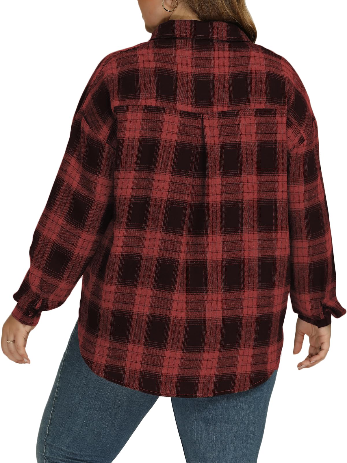 - Women’S Plus Size Tops feature stylish buffalo check plaid pattern, casual collared neck, cute pocket decor and classic full front-button closure and button cuffs for easy adjustments and added mobility