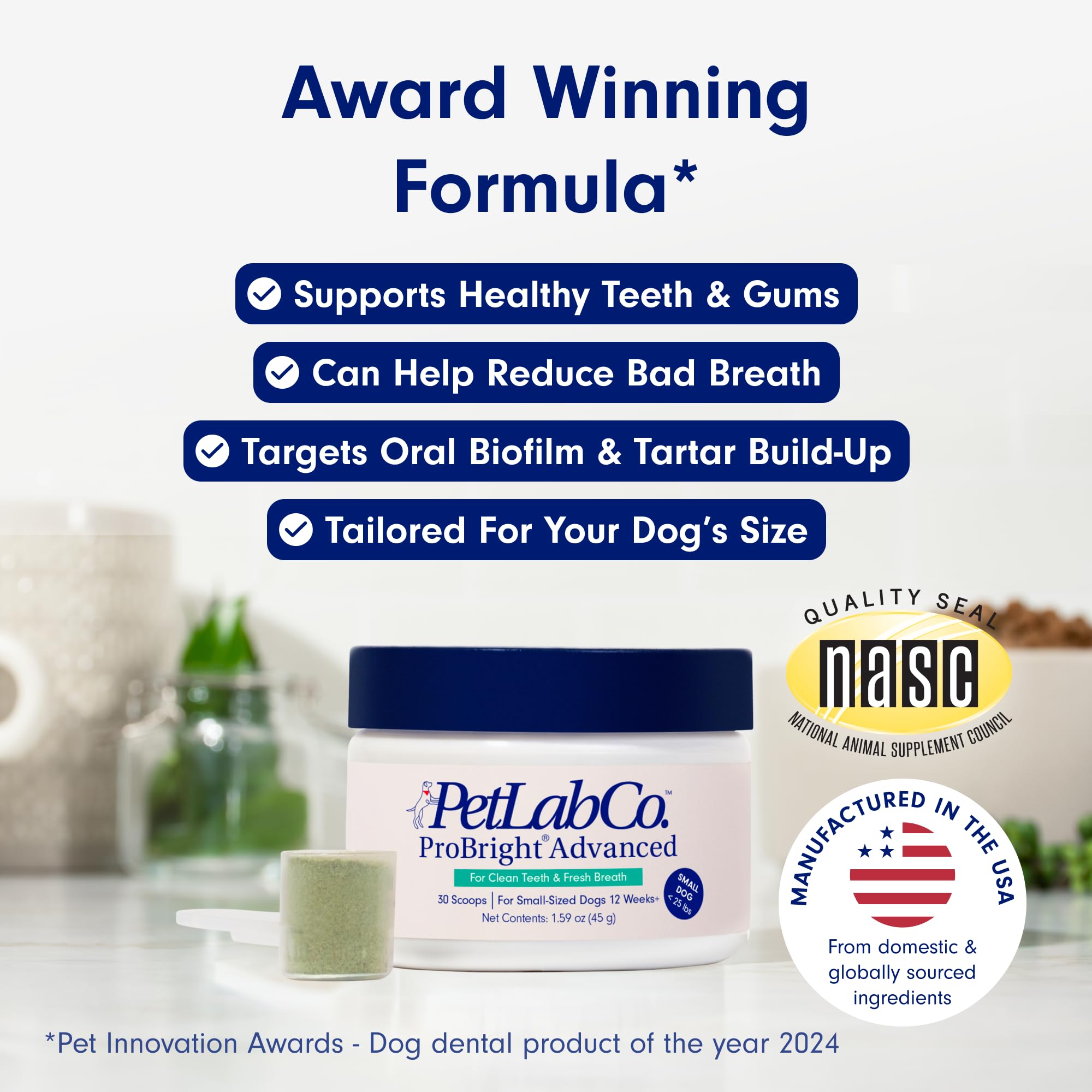 - Award Winning Dental Care – The Award Winning dog dental powder that simplifies oral care like never before. Goodbye toothpaste, brushing fuss, and dental sticks; hello, Probright. The dog dental care product of the year