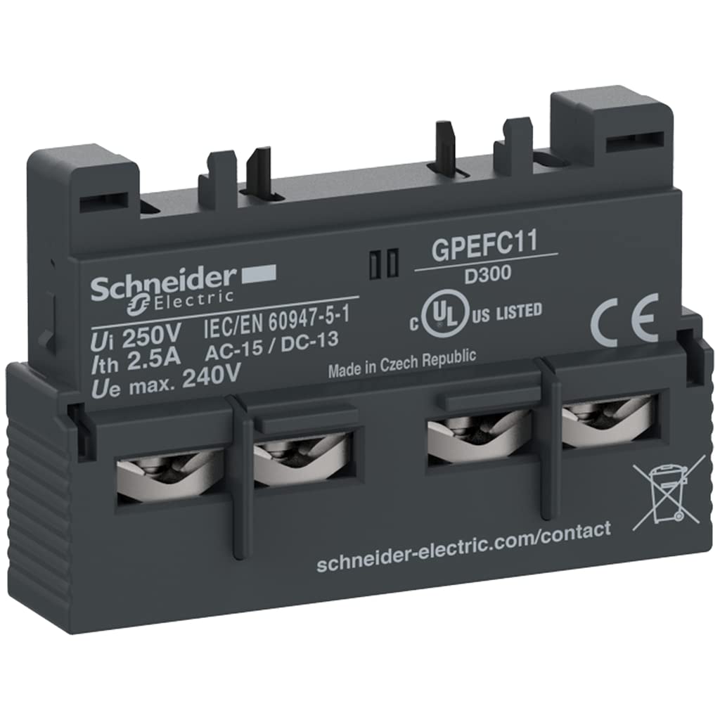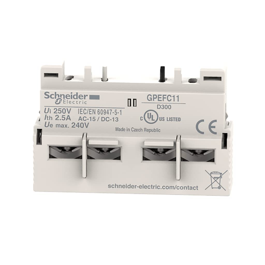 Schneider Electric – GPEFC11 Easy TeSys Auxiliary Contact Block, 1 NO and 1 NC, Top Mount, Screw clamp, for use with GP2E Manual Motor Starter