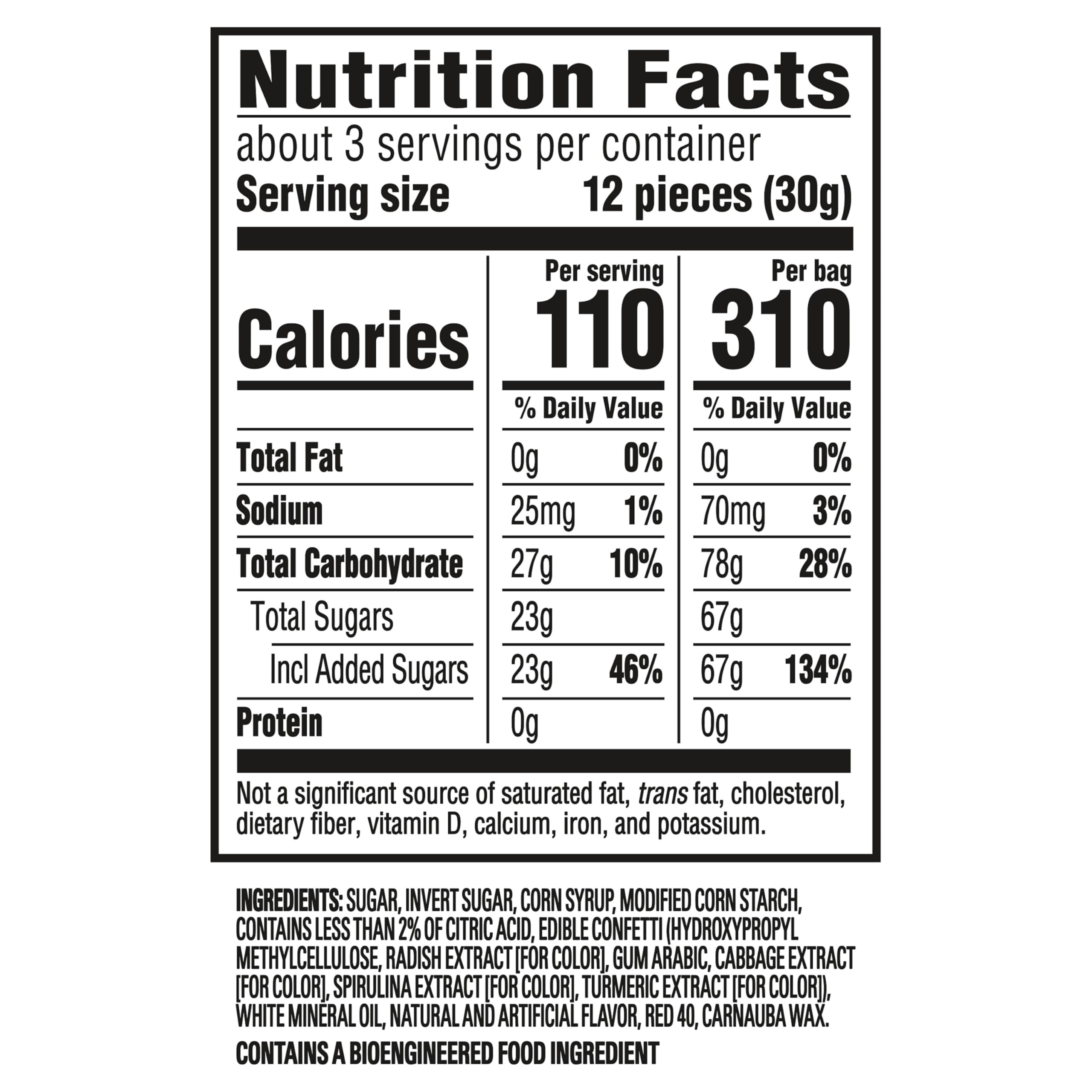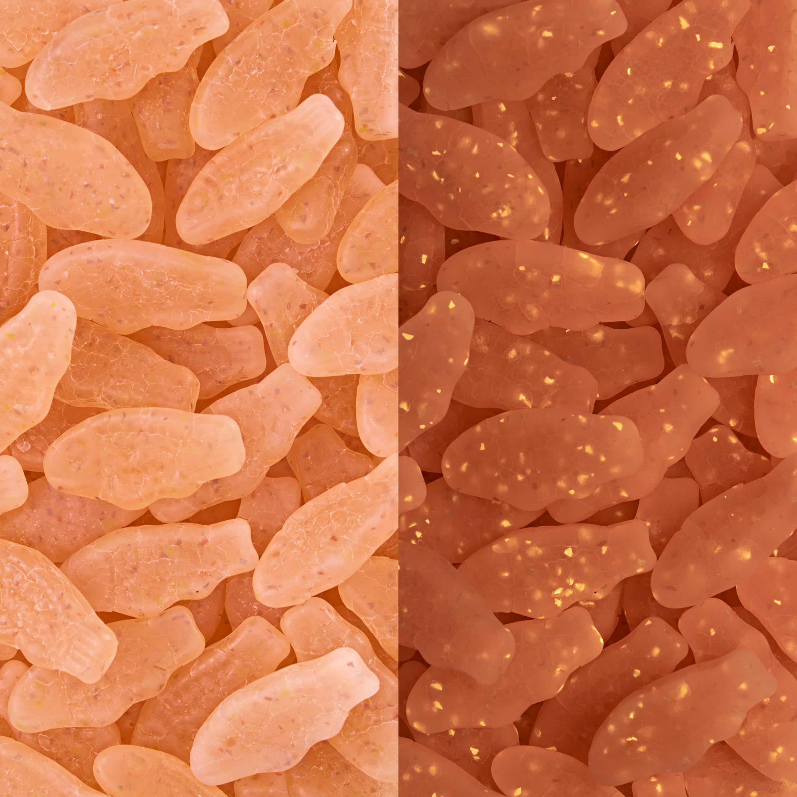 • Fun, fish-shaped candy gummies featuring edible confetti that glows under blacklight and a sweet strawberry-watermelon flavor