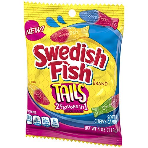 - Swedish Fish Tails doubled up on goodness with two delicious flavors in one gummy candy