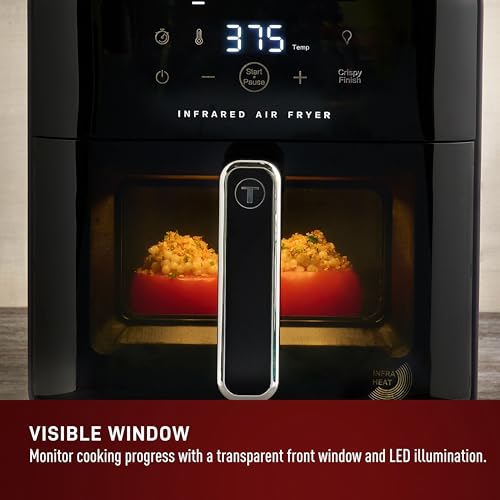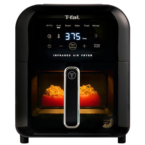 T-fal Infrared Air Fryer: 6 qt Digital Touch Screen, 7-in-1 Cooking Functions, 45-Seconds to reach 750°F on carbon fiber heater surface, No-Shake Technology, Crispy Finish, 1550W, Black