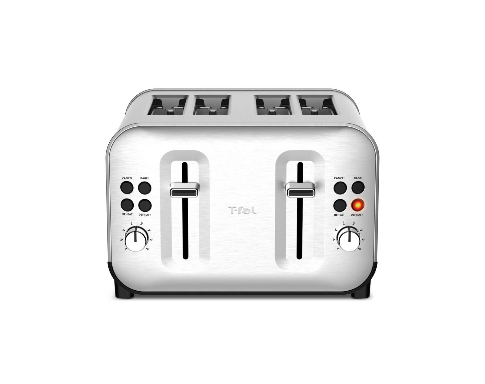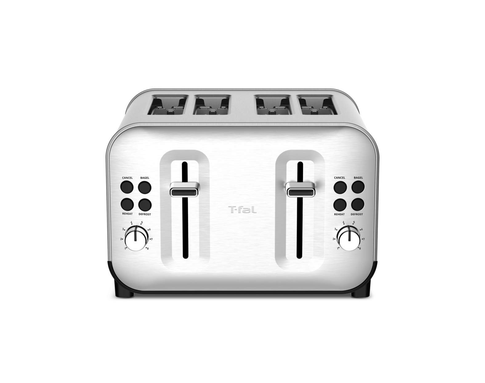 Details: Good things come in extra pretty packages! with the T-fal element stainless steel toaster, enjoy delicious toast and bagel from an elegant machine. Featuring 8 browning levels, this toaster ensures perfectly browned toast, customized to every taste. At the same time, its two variable-width slots accommodate thick and thin slices alike, while four functions with light up, touch-sensitive buttons provide added ease of use: stop, to immediately stop the toasting cycle; defrost, to toast frozen bread; reheat, to heat previously toasted snacks and bagel to ensures ideal browning. Rounding it all off is a high-lift lever to easily remove even the smallest pieces of toast, a convenient removable crumb tray for practical clean-up, and 1700 w of power. With the T-fal element stainless steel toaster, every bread is toasted to perfection!