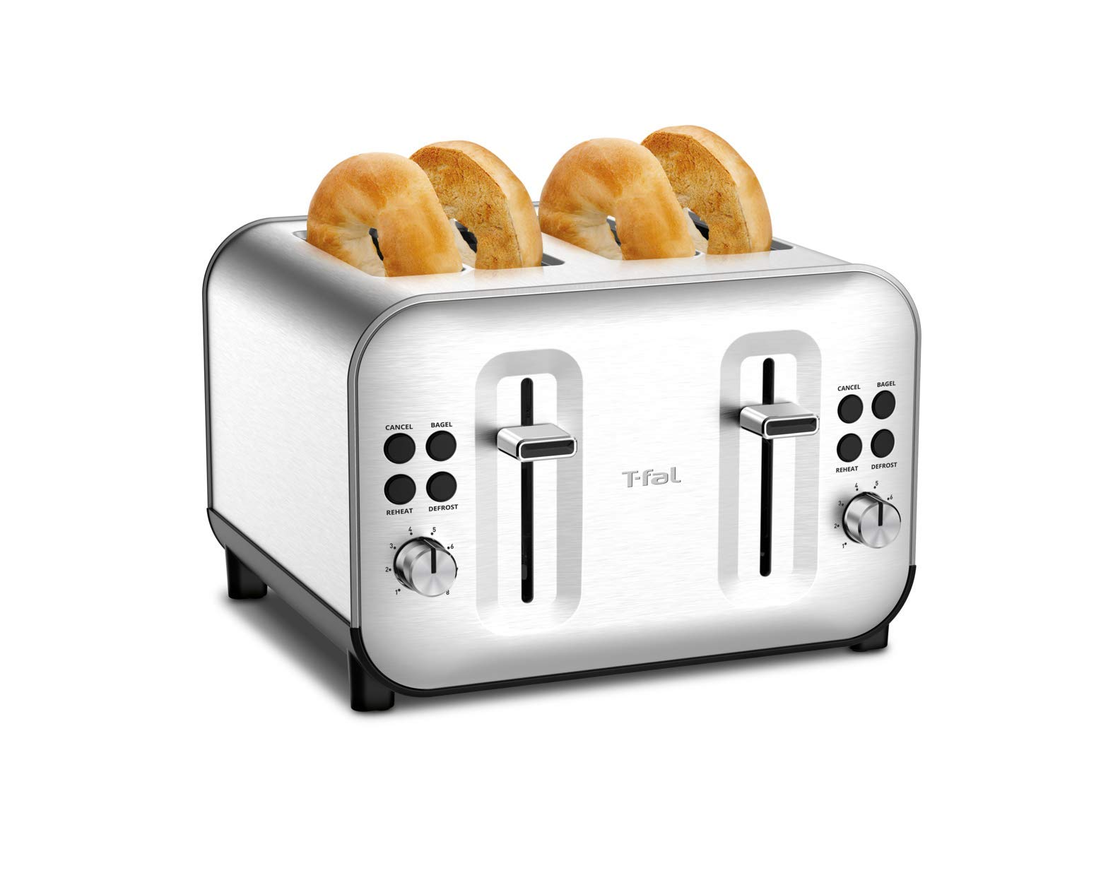 T-Fal TF684D50 Element Stainless Steel 4 Slice Toaster, toasts breads, Bagels Snacks, reheat, 8 Browning levers, Silver