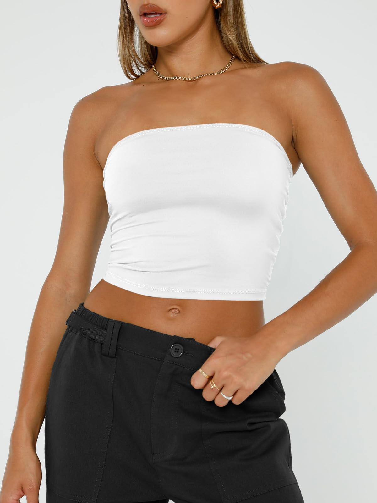 Trendy Queen Womens Tube Tops Strapless Crop Tops Basic Backless Sleeveless Bandeau Going Out Cute 2025 Summer Outfits White S