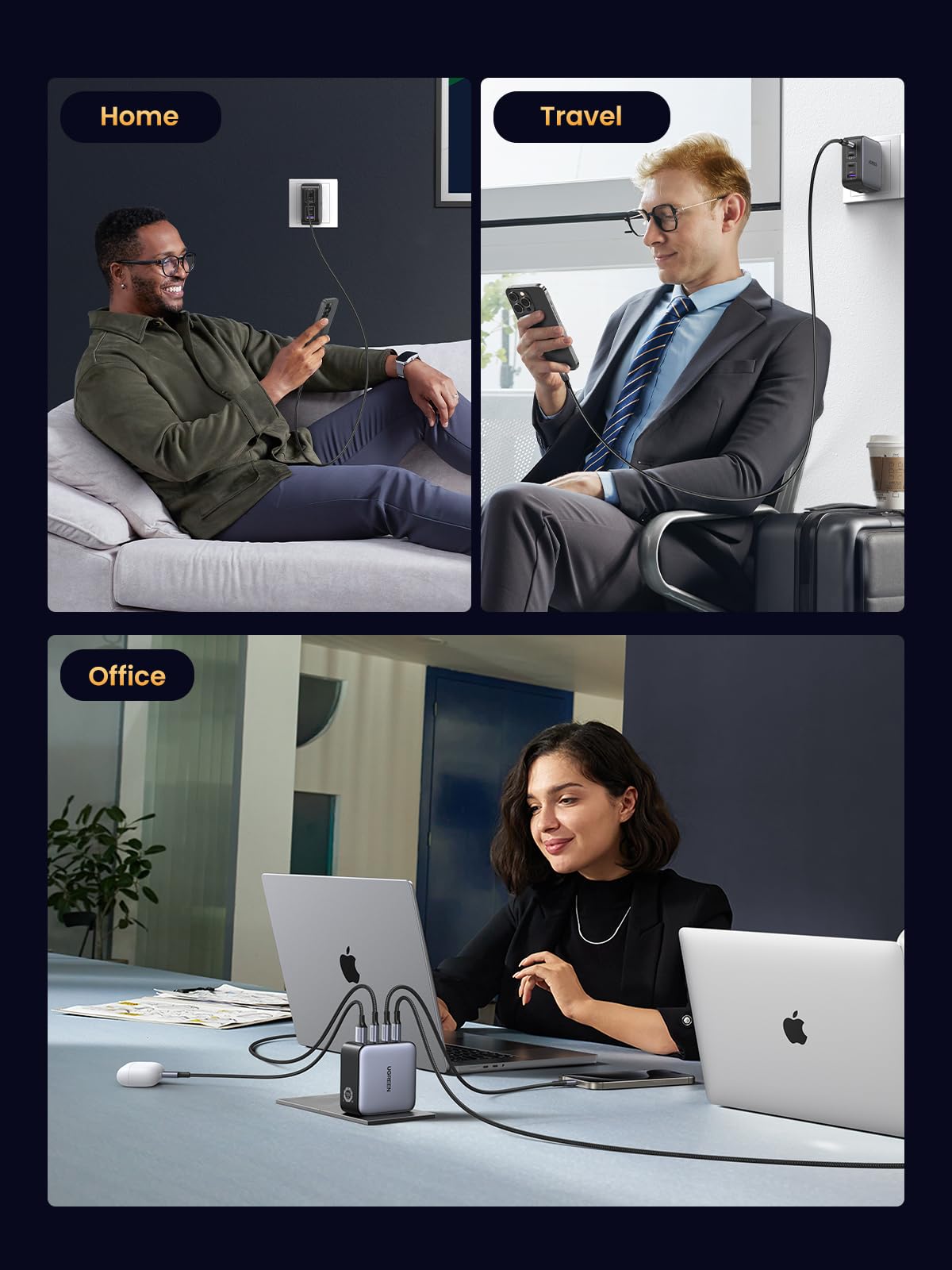 - Portable, compact design: A GaN chip combined with foldable plug design makes this 100W charger small enough to fit in the palm of your hand without a sacrifice in quality or power, very suitable for long distance travel or business trips