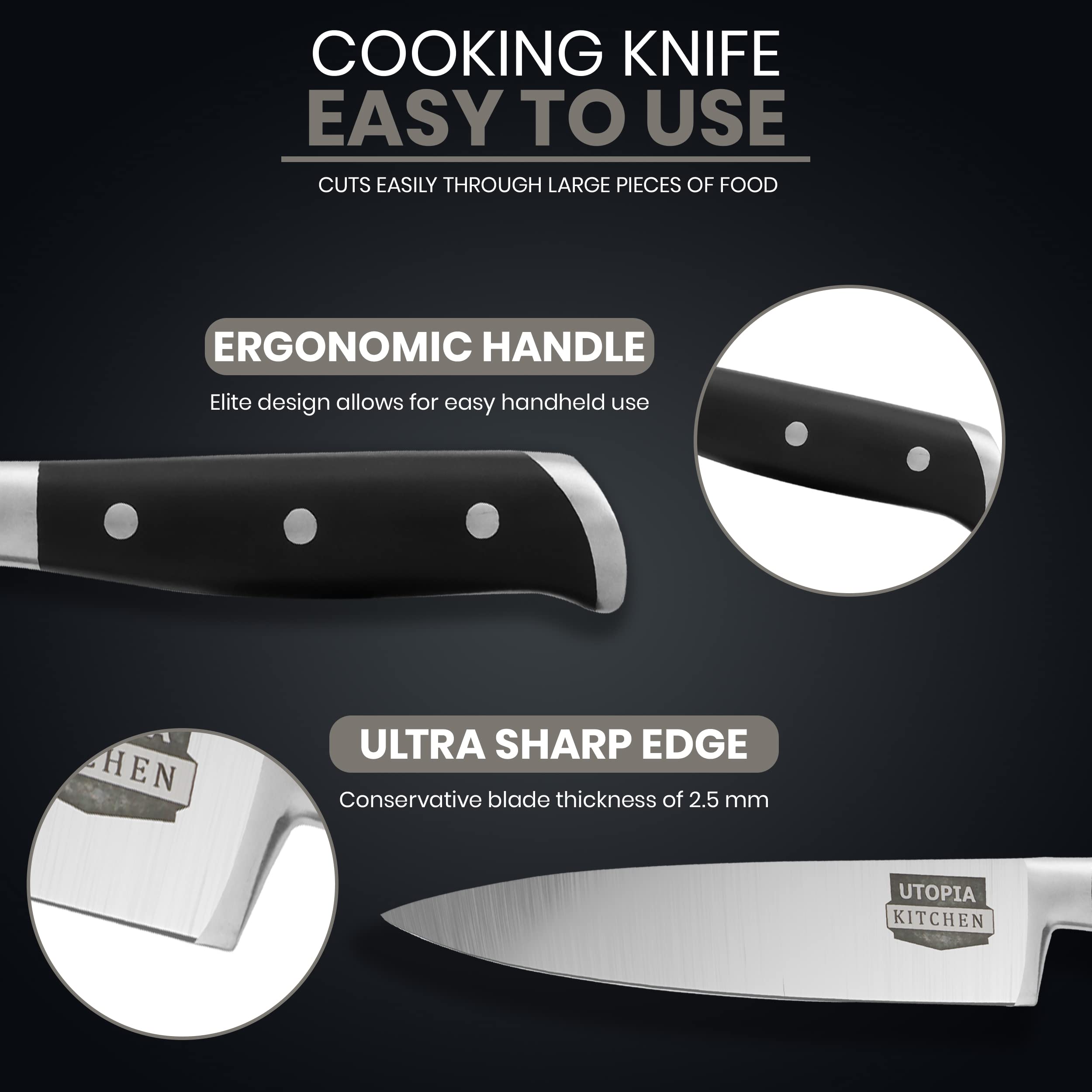Utopia Kitchen 8 inch Chef Kitchen Knife Cooking Knife Carbon Stainless Steel Kitchen Knife with Sheath and Ergonomic Handle – Chopping Knife for Professional Use (Black)