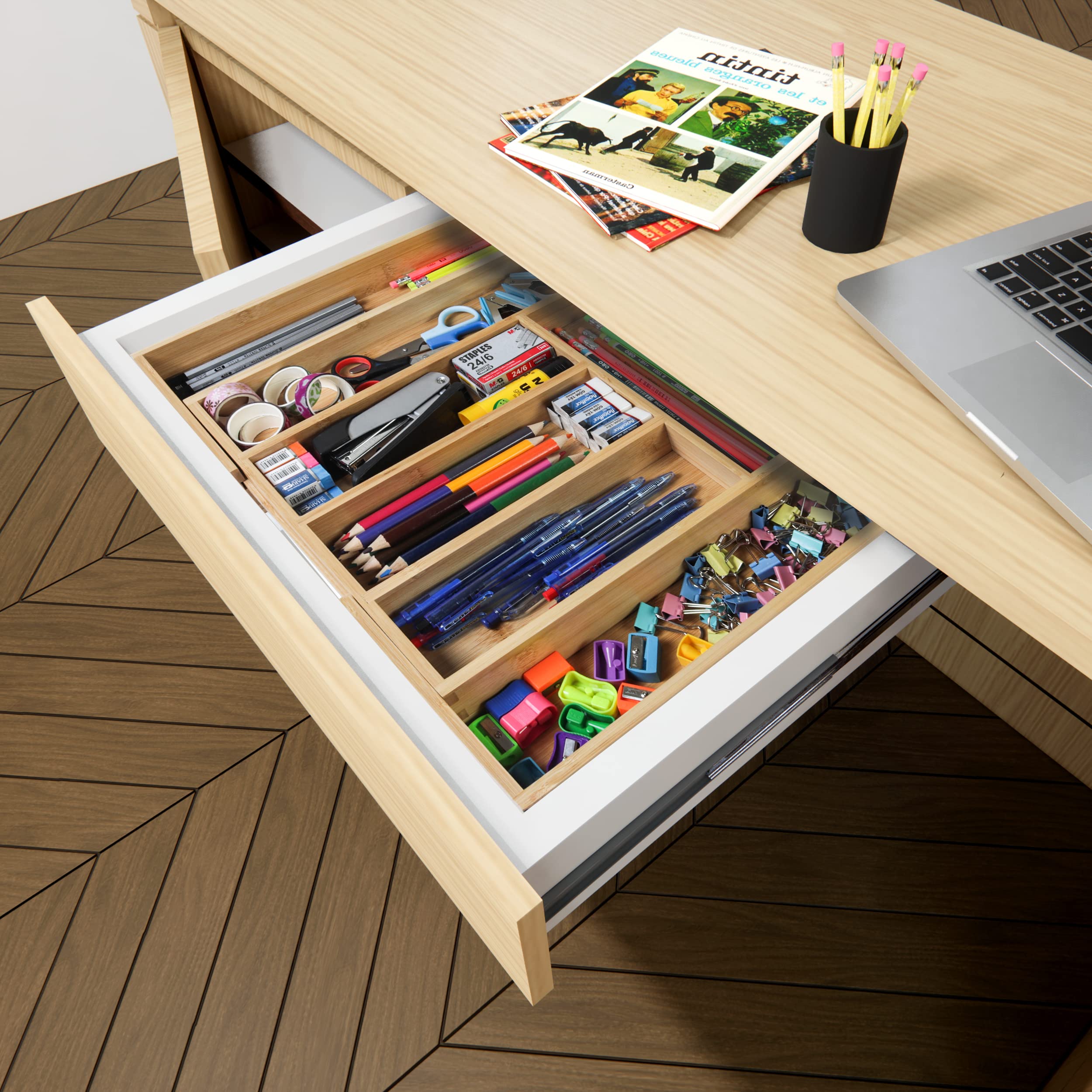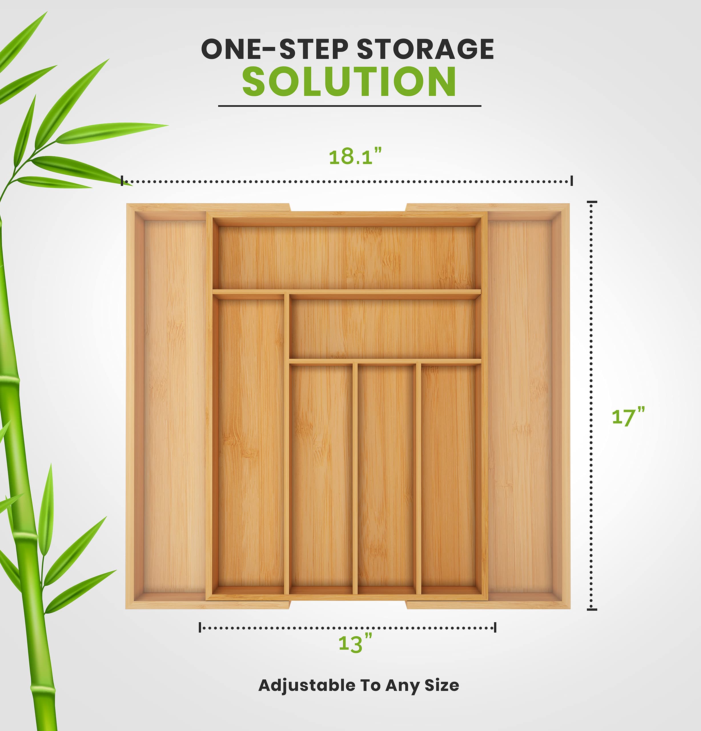 - Bamboo organizer is sized to fit almost any standard drawer to maximize storage space
